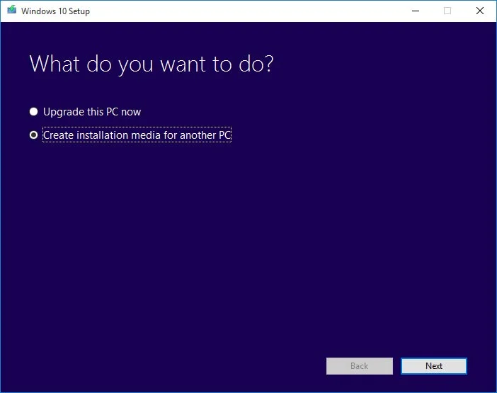 You should start by downloading a copy of a Windows installation ISO. In this case Windows 10 so go to the Download Windows 10 page and depending on the version of Windows you have installed download the 32 or 64-bit version of the tool. Once it's download run the tool and select the create installation media option and click Next