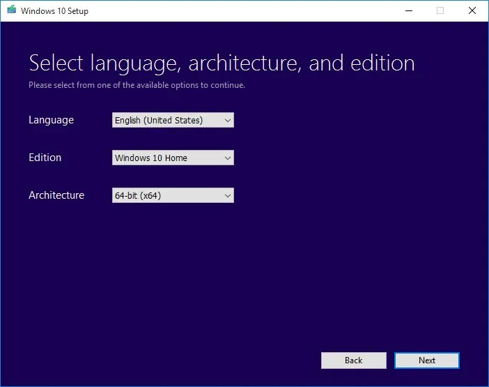 Then choose your preferred language version and Edition. In this case I don't think the selection of a specific Edition is relevant, I just went with the Home version. Then click Next.