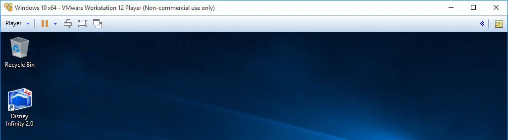 To copy the installation files from the host PC to the virtual machine firstly locate your Disney Infinity 2.0 for PC installation and copy the complete contents of the installation folder to your external data device. Once you have the files copied then with the virtual machine running from the VMware Workstation Player window choose Player > Removable Devices and from that list look for the title of your connected data device and choose Connect as shown below. The external drive will then disconnect from your PC and instead be available to the virtual machine. It should then appear on the virtual desktop just like it would on the host PC and you can then copy the contents of the Disney Infinity 2.0 installation folder on the drive to the installation folder for Disney Infinity 2.0 on the virtual machine. If you're prompted to overwrite any duplicate files then please do so.